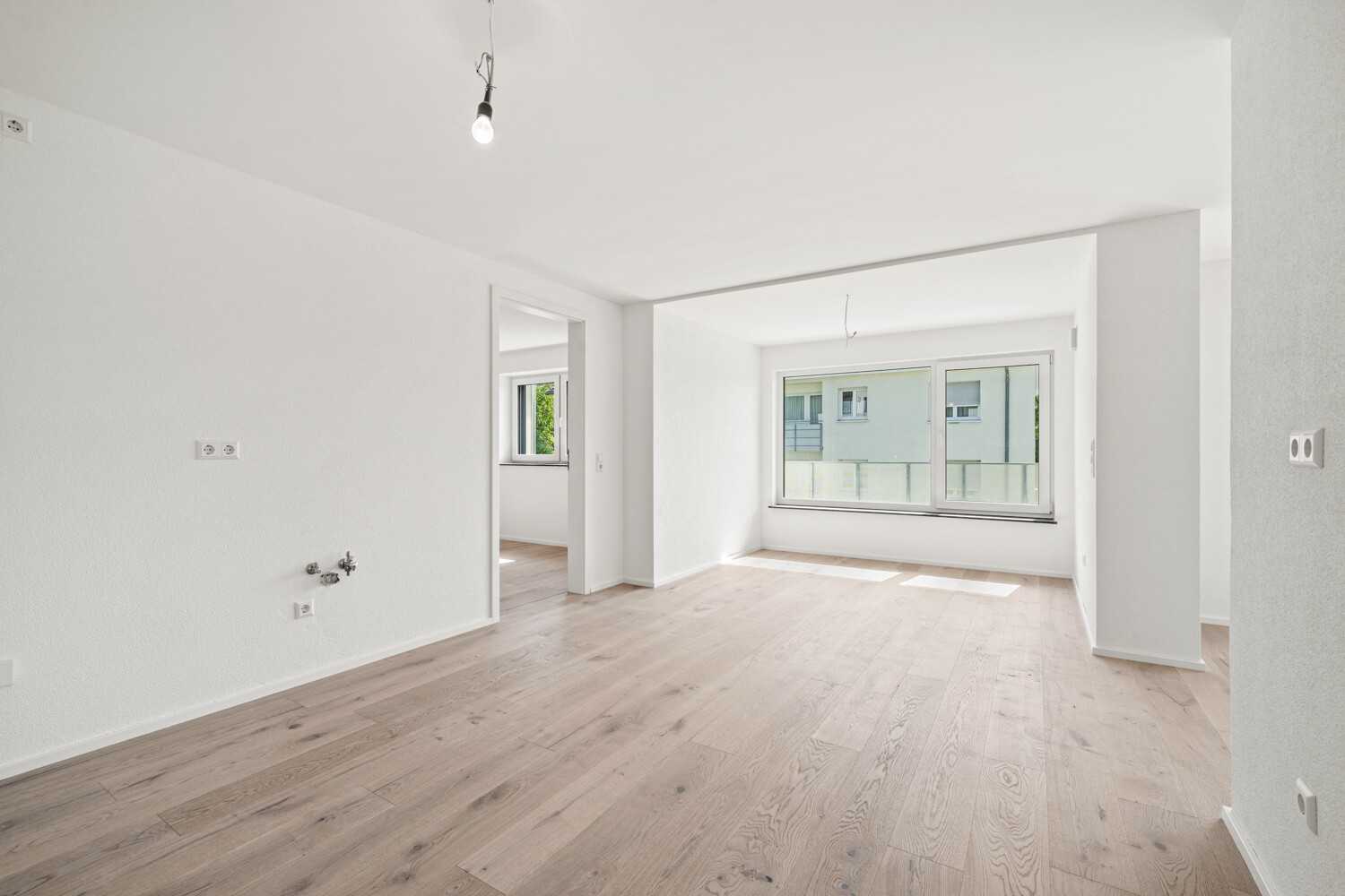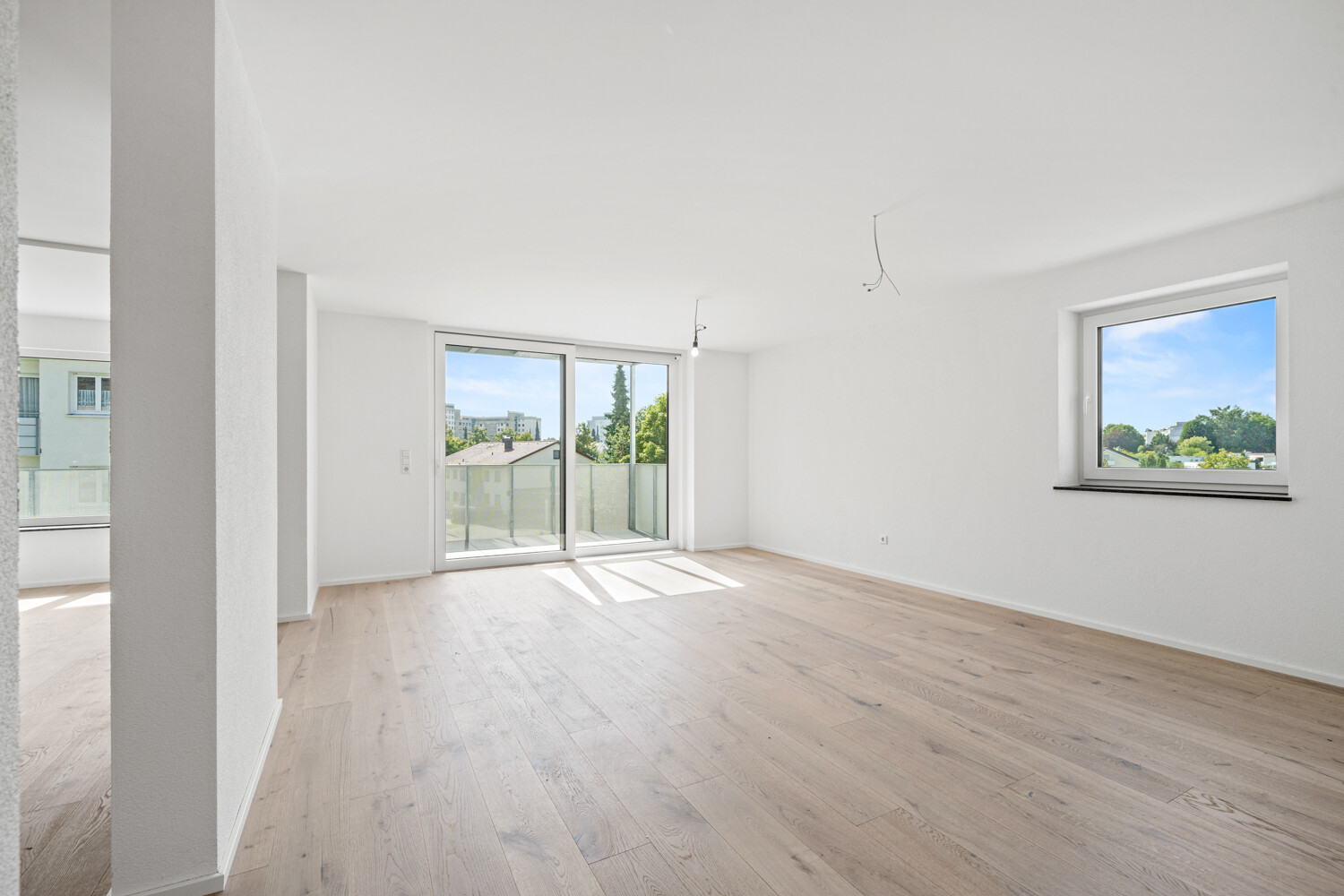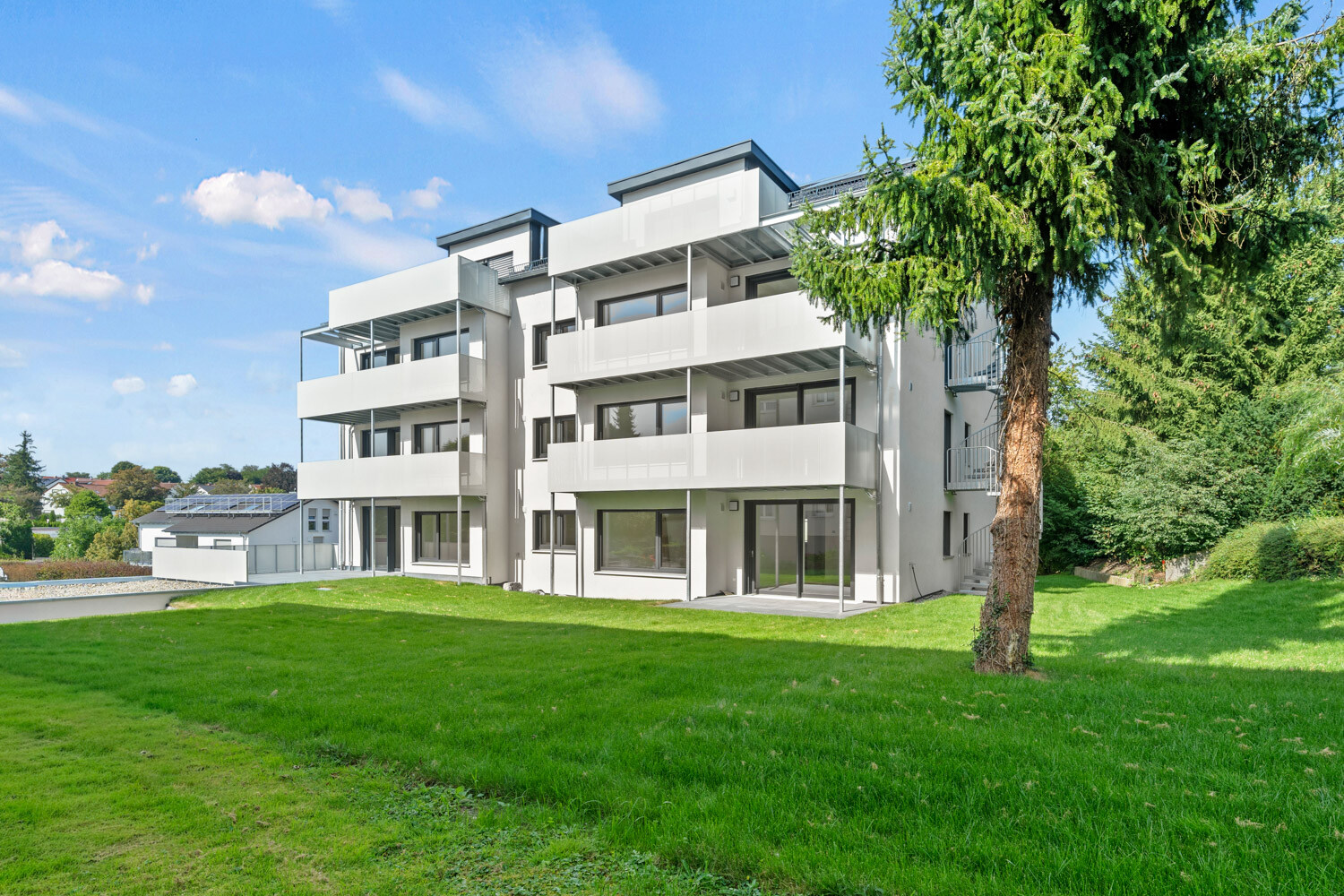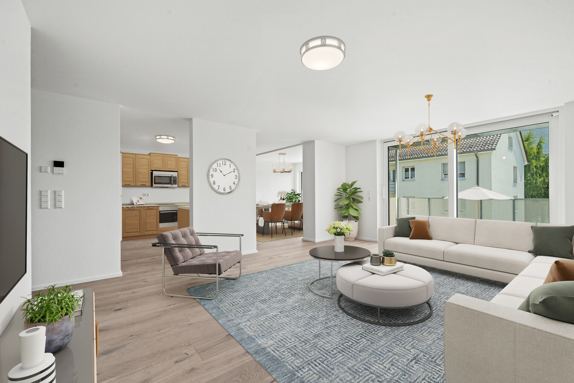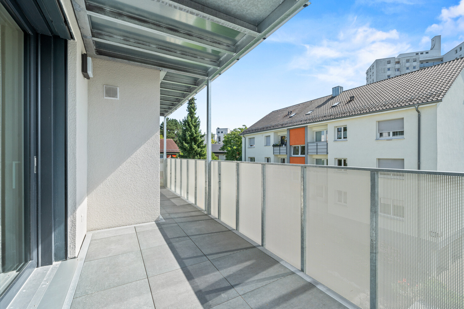 Die 4,5-Zimmer-Wohnung überzeugt mit einem großzügigen Wohn-, Ess- und Kochbereich, zwei Schlafzimmern, einem flexiblen Büro- oder Gästezimmer, einem modernen Bad sowie einem Gäste-WC. Große Fensterflächen lassen viel Tageslicht herein und schaffen eine helle Wohnatmosphäre. Der Balkon erweitert den Wohnbereich und bietet zusätzlichen Freiraum im Grünen.
