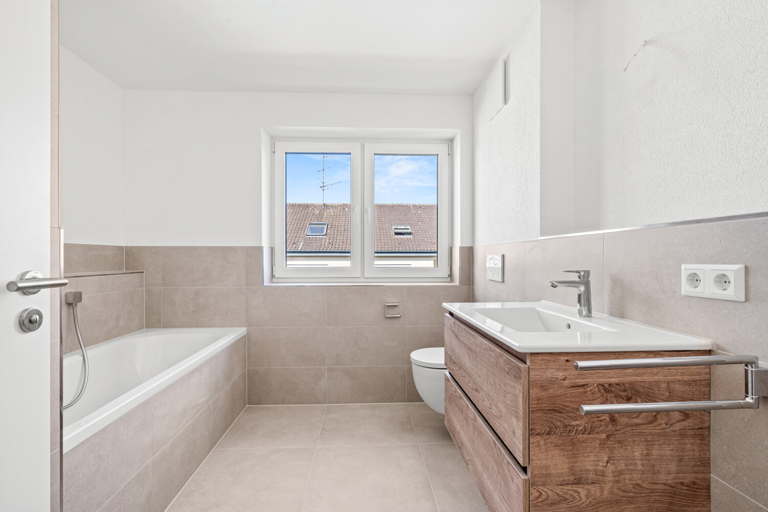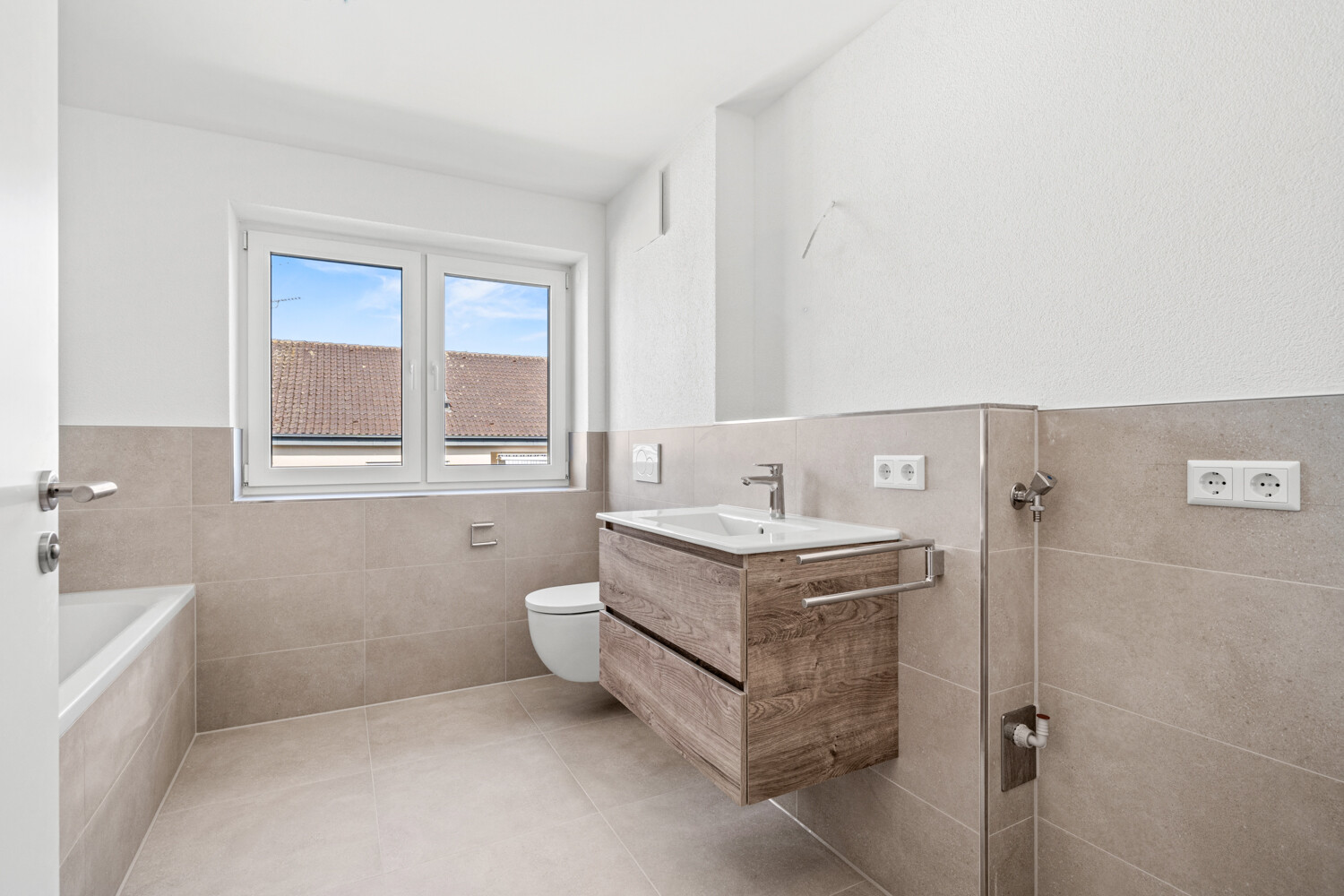 Die Ausstattung entspricht dem KfW-55-Standard und kombiniert Nachhaltigkeit mit Wohnkomfort. Eine Wärmepumpe, Photovoltaikanlage, Fußbodenheizung und eine dezentrale Lüftung mit Wärmerückgewinnung sorgen für niedrige Betriebskosten und ein angenehmes Raumklima. Hochwertige Materialien wie Eichenparkett, moderne Sanitärobjekte und bodentiefe Fenster runden den hochwertigen Eindruck ab.