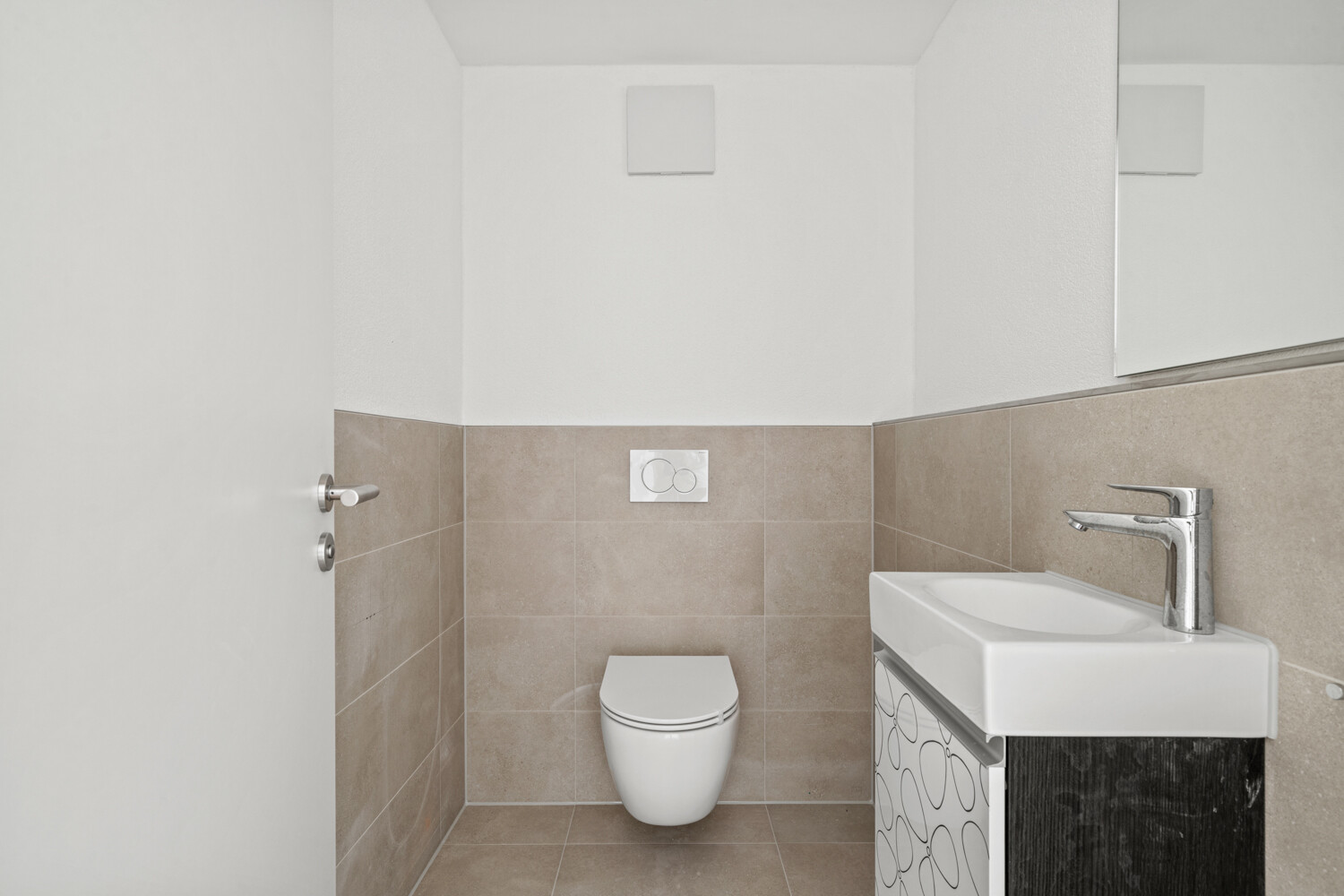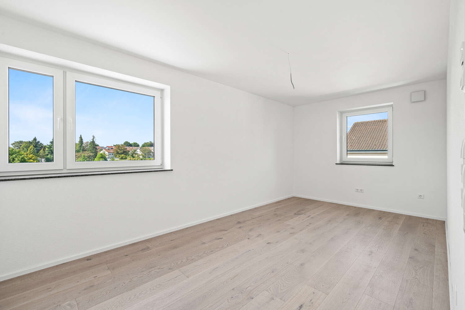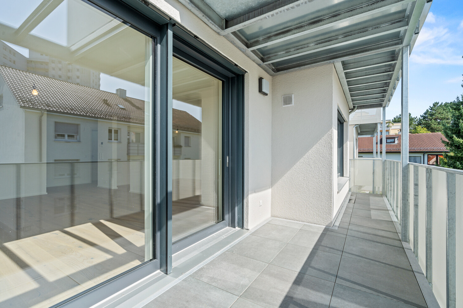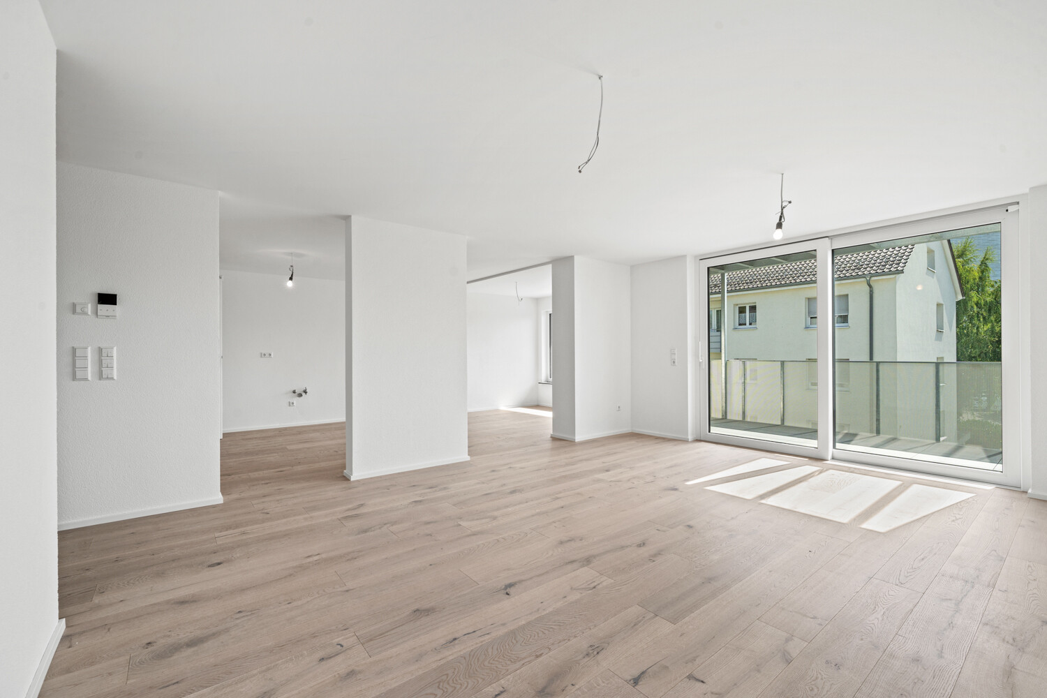 Die 4,5-Zimmer-Wohnung überzeugt mit einem großzügigen Wohn-, Ess- und Kochbereich, zwei Schlafzimmern, einem flexiblen Büro- oder Gästezimmer, einem modernen Bad sowie einem Gäste-WC. Große Fensterflächen lassen viel Tageslicht herein und schaffen eine helle Wohnatmosphäre. Der Balkon erweitert den Wohnbereich und bietet zusätzlichen Freiraum im Grünen.