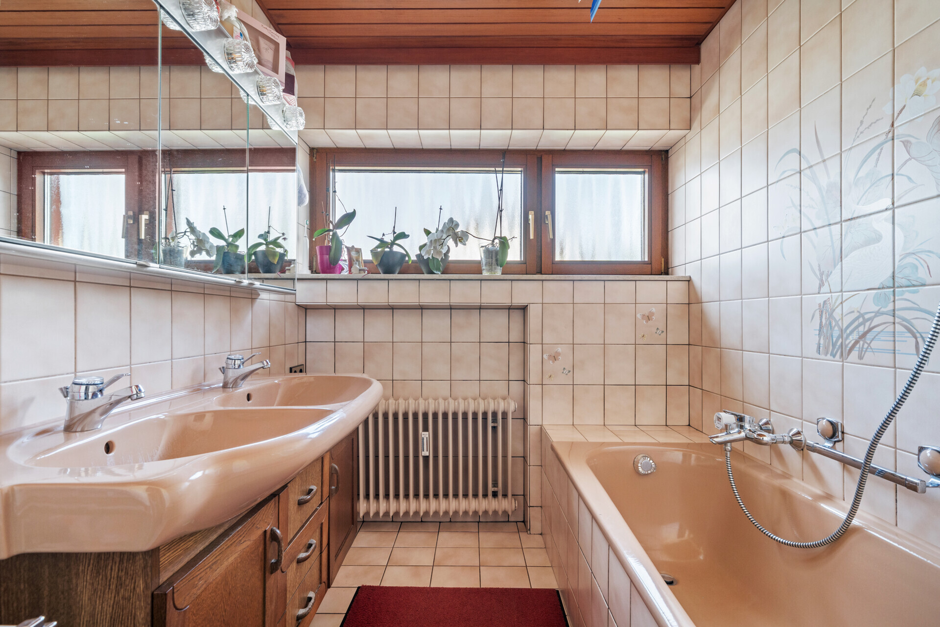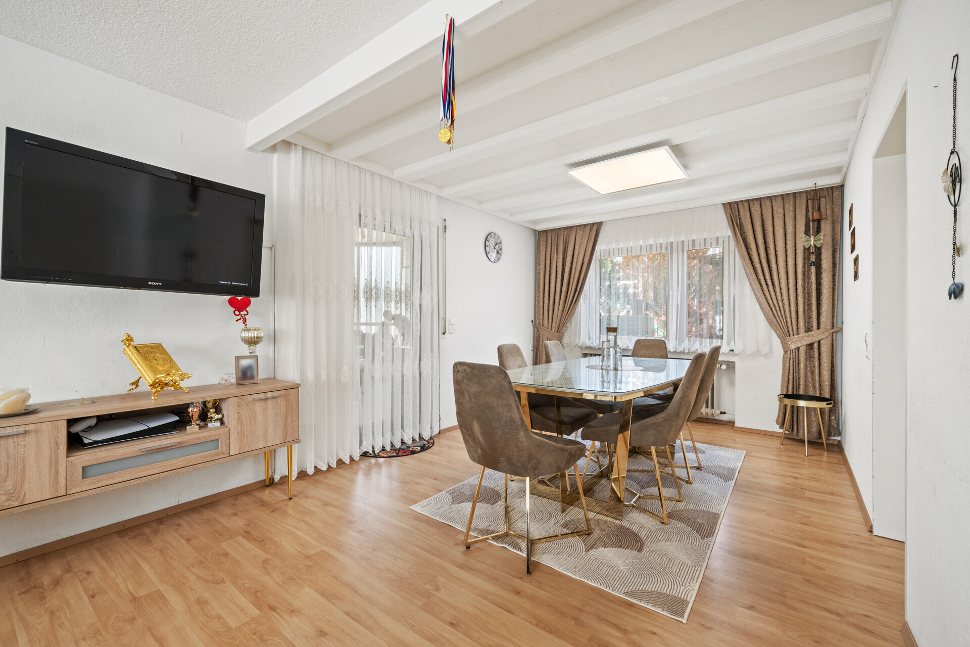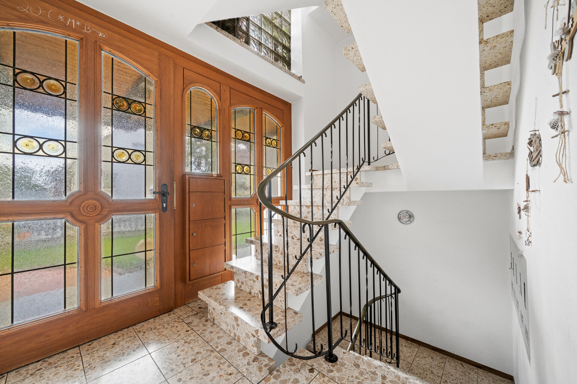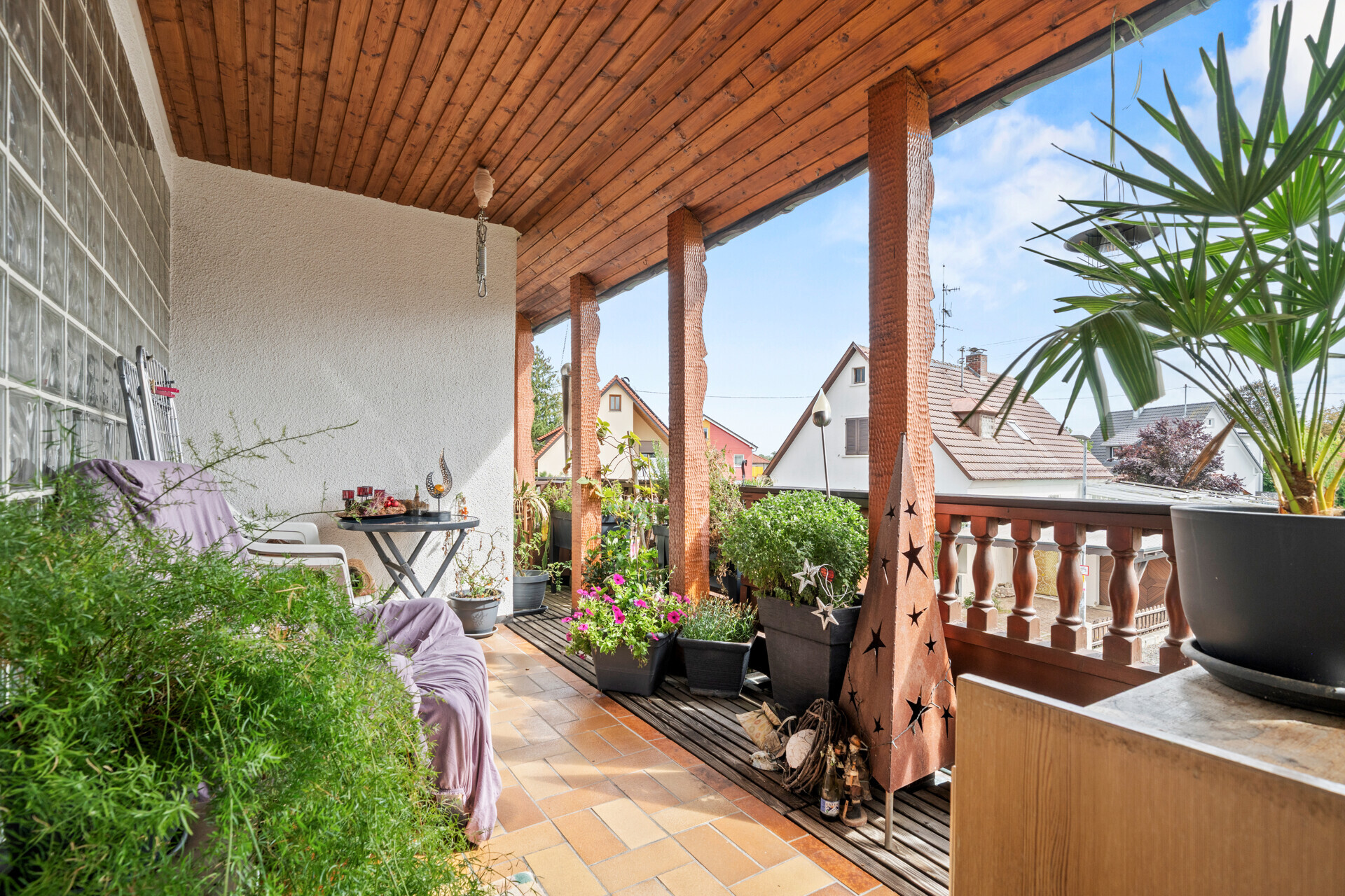 Das Objekt beherbergt drei Wohneinheiten mit insgesamt rund 225 m² Wohn- und wohnlich ausgebaute Nutzfläche. Im Erdgeschoss befindet sich eine großzügige 5,5-Zimmer-Wohnung mit etwa 102 m² und einem überdachten Freisitz, der zum Verweilen einlädt.