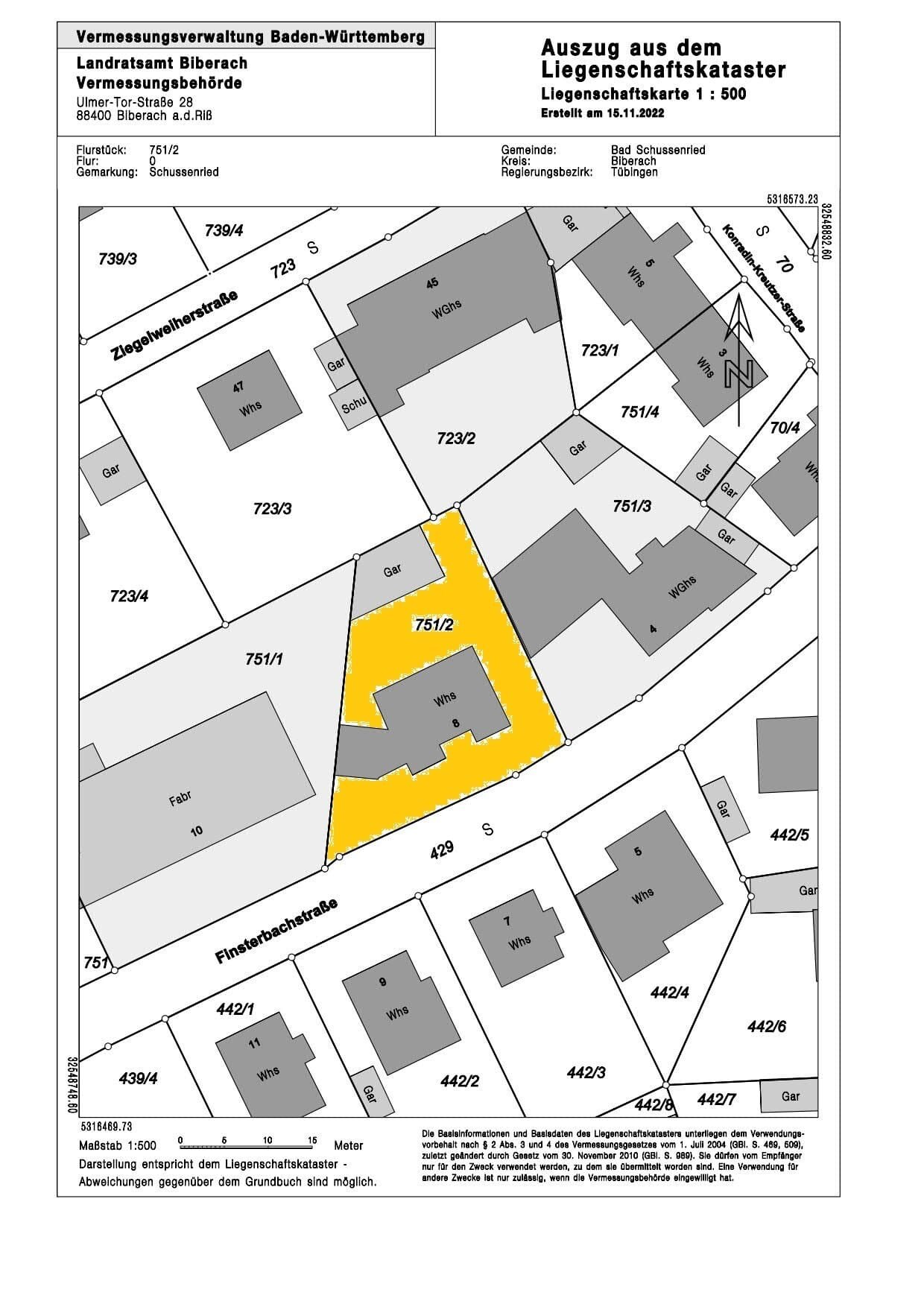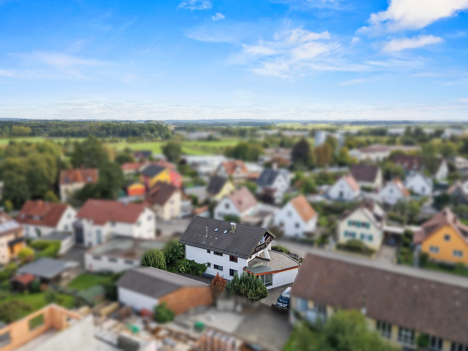 Das Mehrfamilienhaus befindet sich am ruhigen östlichen Ortsrand von Bad Schussenried. Die Innenstadt mit Einkaufsmöglichkeiten, Ärzten, Gastronomie, dem bekannten Kloster sowie Grünanlagen ist bequem zu Fuß erreichbar. Auch der Bahnhof mit regelmäßigen Verbindungen Richtung Ulm und Friedrichshafen liegt in der Nähe.