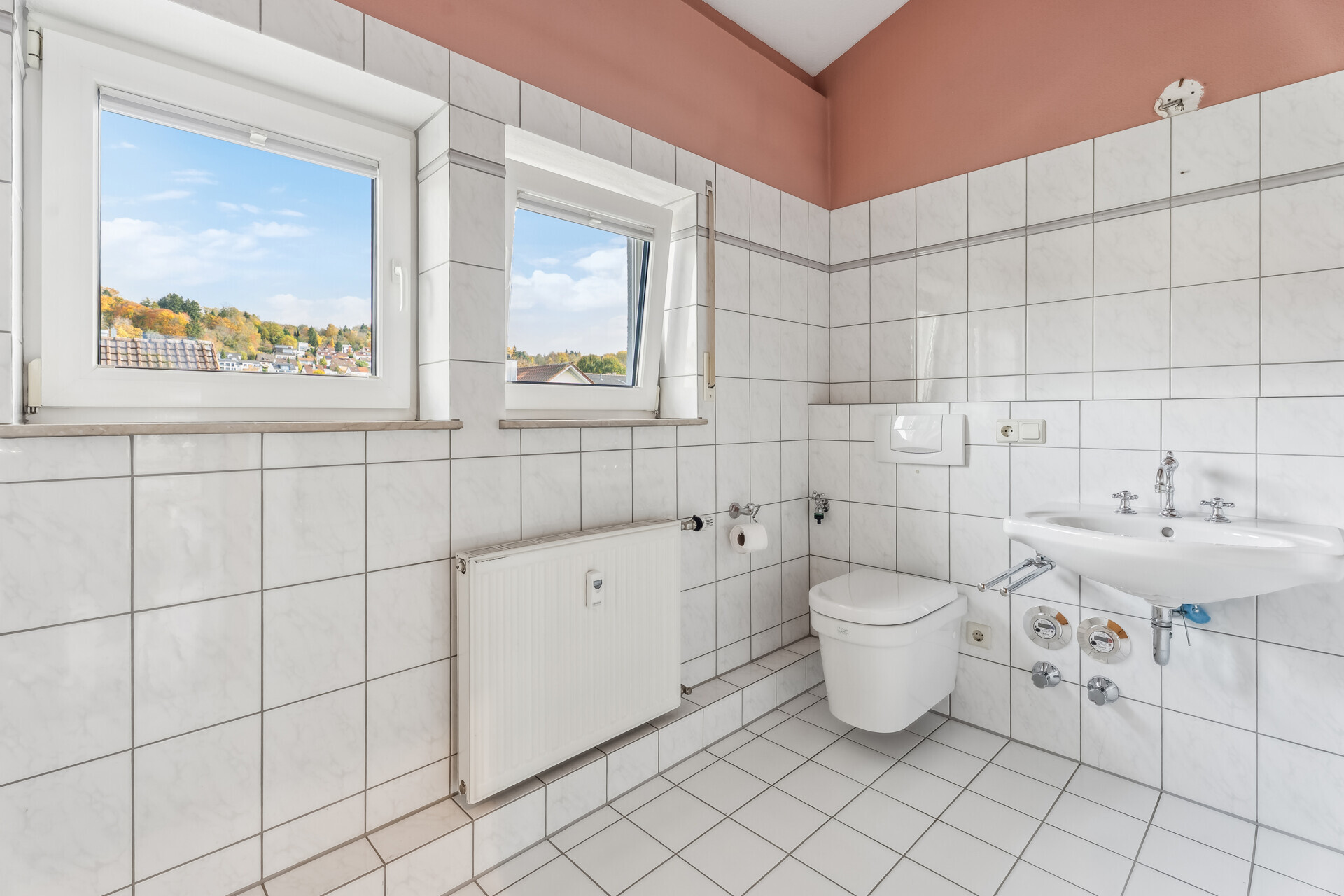 - Tageslichtbad mit Badewanne, Dusche und Waschmaschinenanschluss