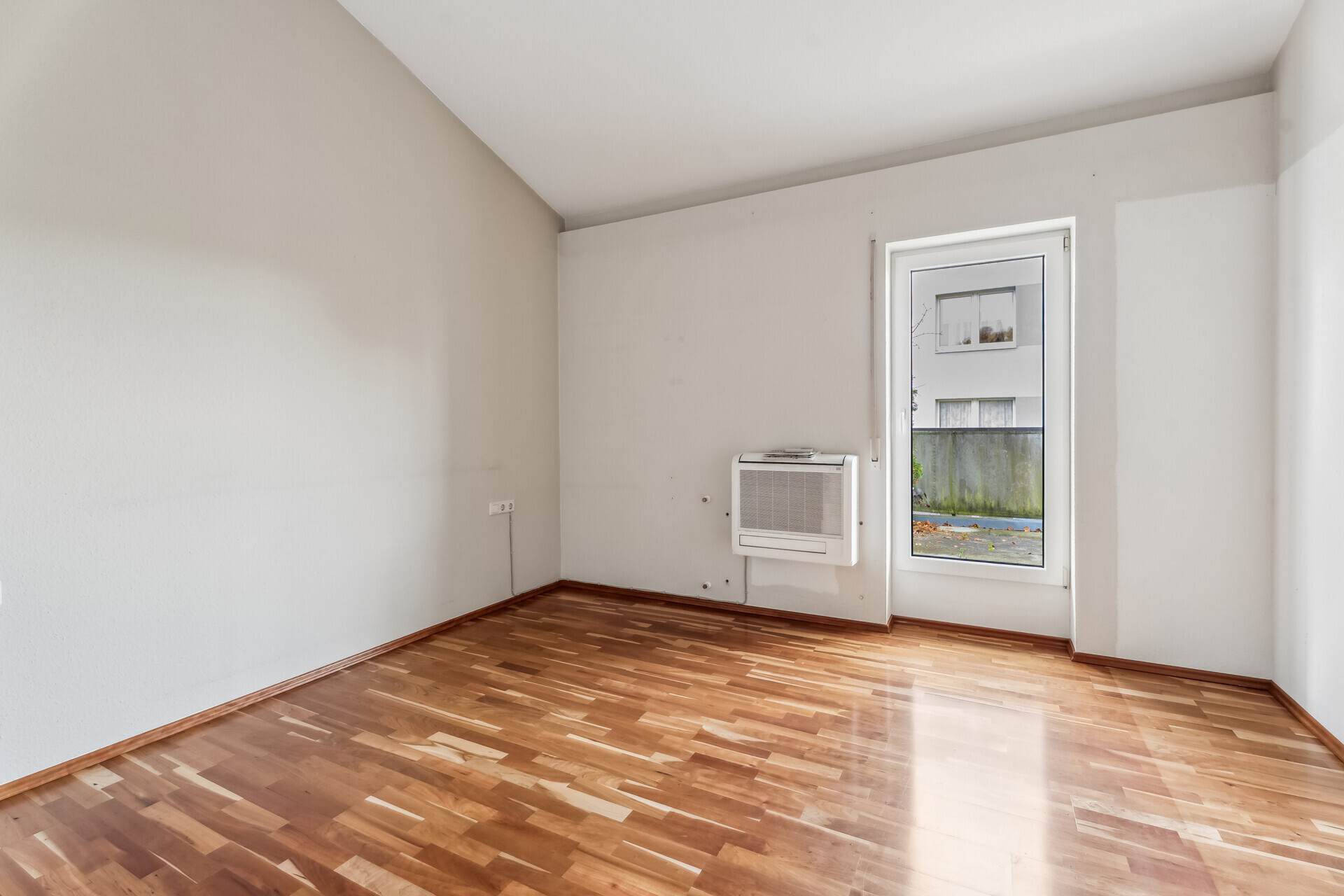 Für angenehme Temperaturen im Schlafzimmer sorgt eine Klimaanlage, während eine neue Luft-Wärmepumpe aus 2024 eine effiziente und umweltfreundliche Heizlösung bietet.