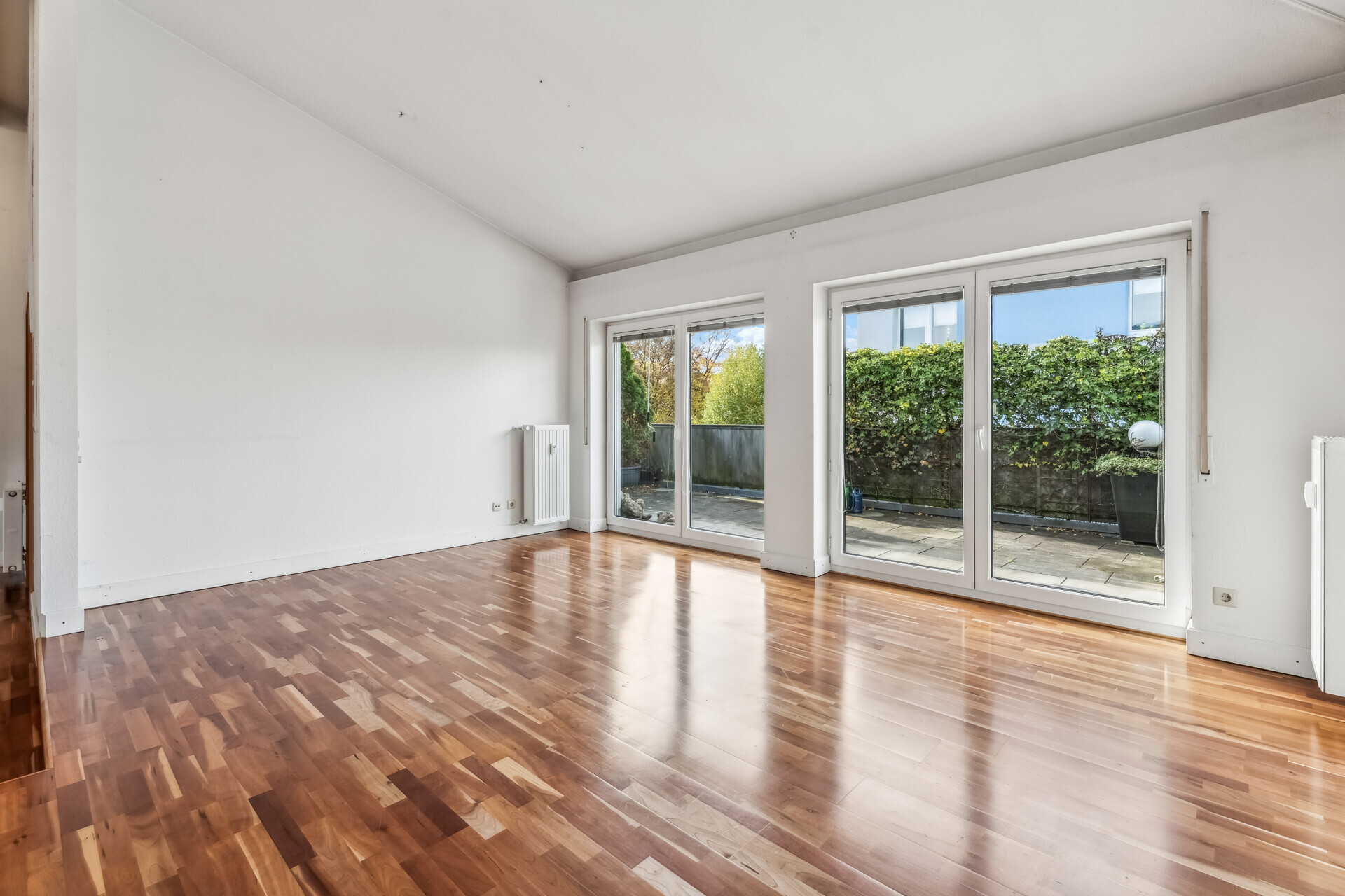 Großzügige, teils bodentiefe Fenster lassen den Wohnraum in Tageslicht erstrahlen und schaffen eine helle, einladende Atmosphäre.