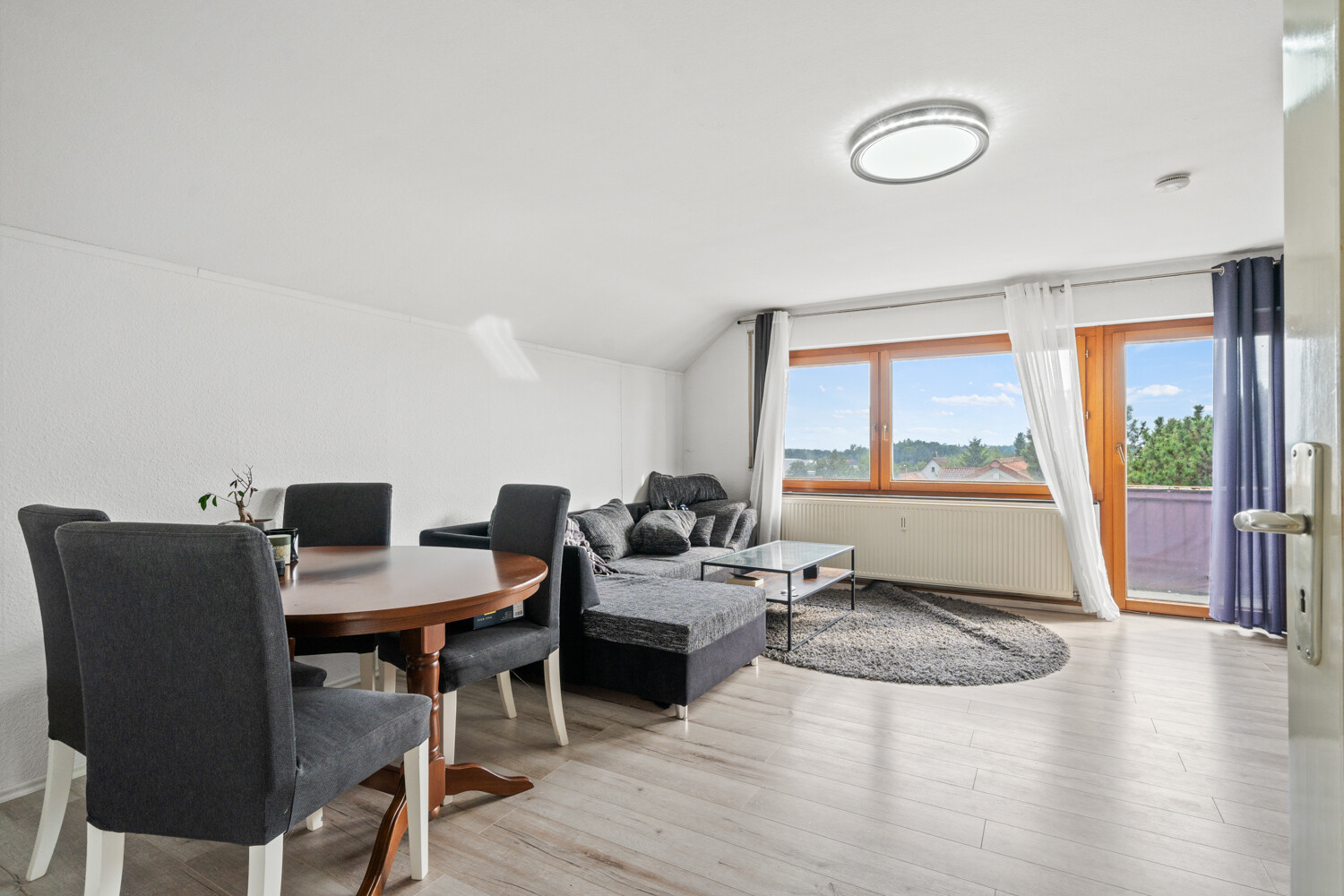 Das Dachgeschoss empfängt Sie mit zwei Zimmern und einer Wohnfläche von ca. 67 m² die Dachgauben schaffen zusätzlichen Raum und lichtdurchflutete Atmosphären.