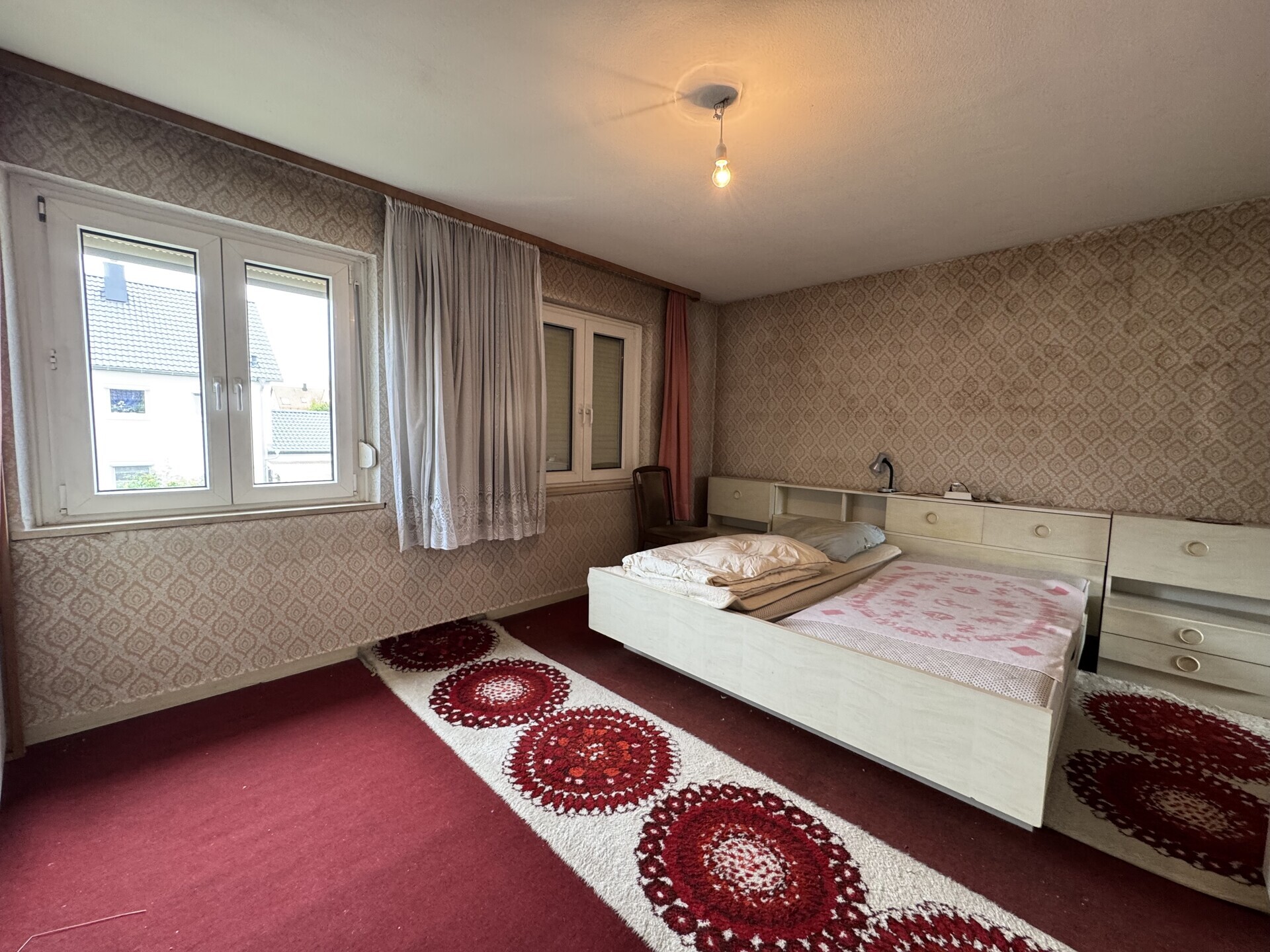 Es kann durch einen Anbau zeitgemäß erweitert werden. Einige Nachbarhäuser haben durch einen intelligenten Anbau die Wohnfläche erweitert. Der Bebauungsplan lässt dies auch bei diesem Hausangebot grundsätzlich zu. Somit können Sie vermutlich die Wohnfläche auf über 100 m² zeitgemäß anpassen.