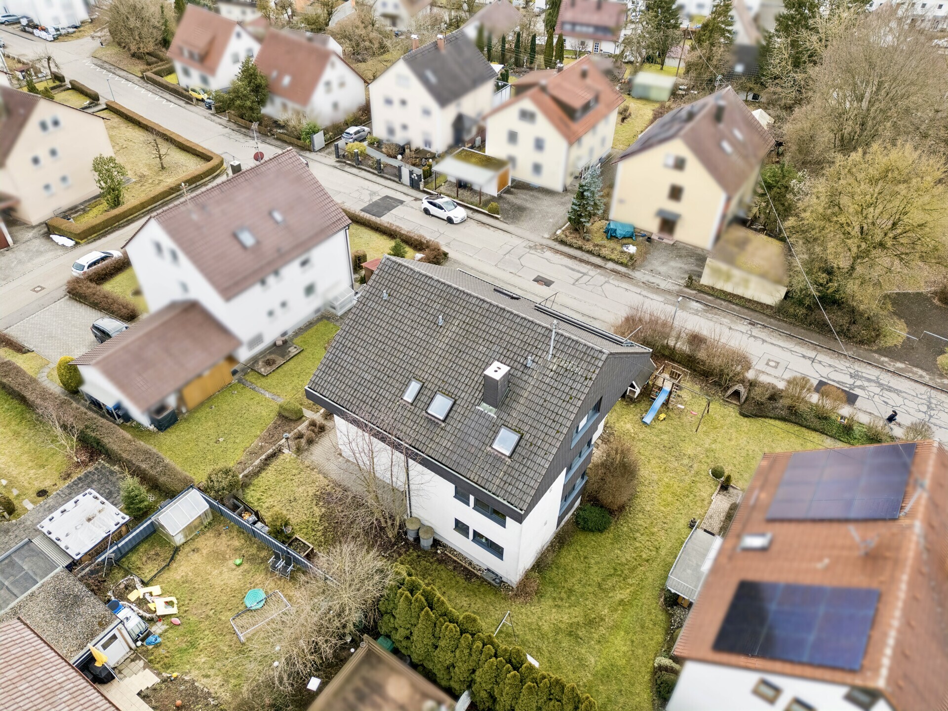 Mitten im gewachsenen Ortskern von Dornstadt steht dieses massiv gebaute Dreifamilienhaus aus dem Jahr 1979 auf einem ca. 650 m² großen Grundstück. Die Immobilie bietet drei abgeschlossene Wohneinheiten mit insgesamt rund 302 m² Wohnfläche: Zwei 4-Zimmer-Wohnungen im Erd- und Obergeschoss (je ca. 107,9 m²) sowie eine Dachgeschosswohnung mit ca. 86,8 m². Durchdachte Grundrisse und helle Räume garantieren hohe Vermietbarkeit.