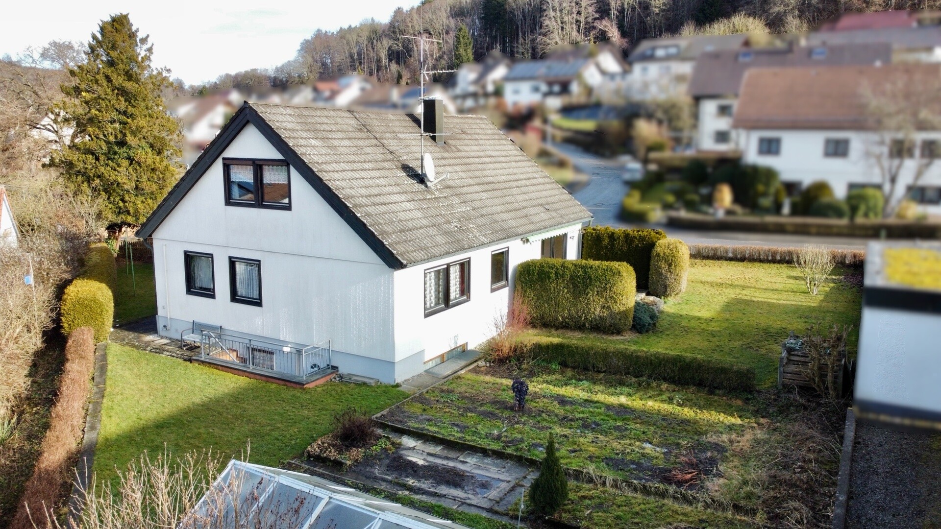 Zum Verkauf steht ein über 800 m² großes Grundstück in Südausrichtung, samt Einfamilienhaus und Doppelgarage, welches in den späten 70er Jahren errichtet wurde.