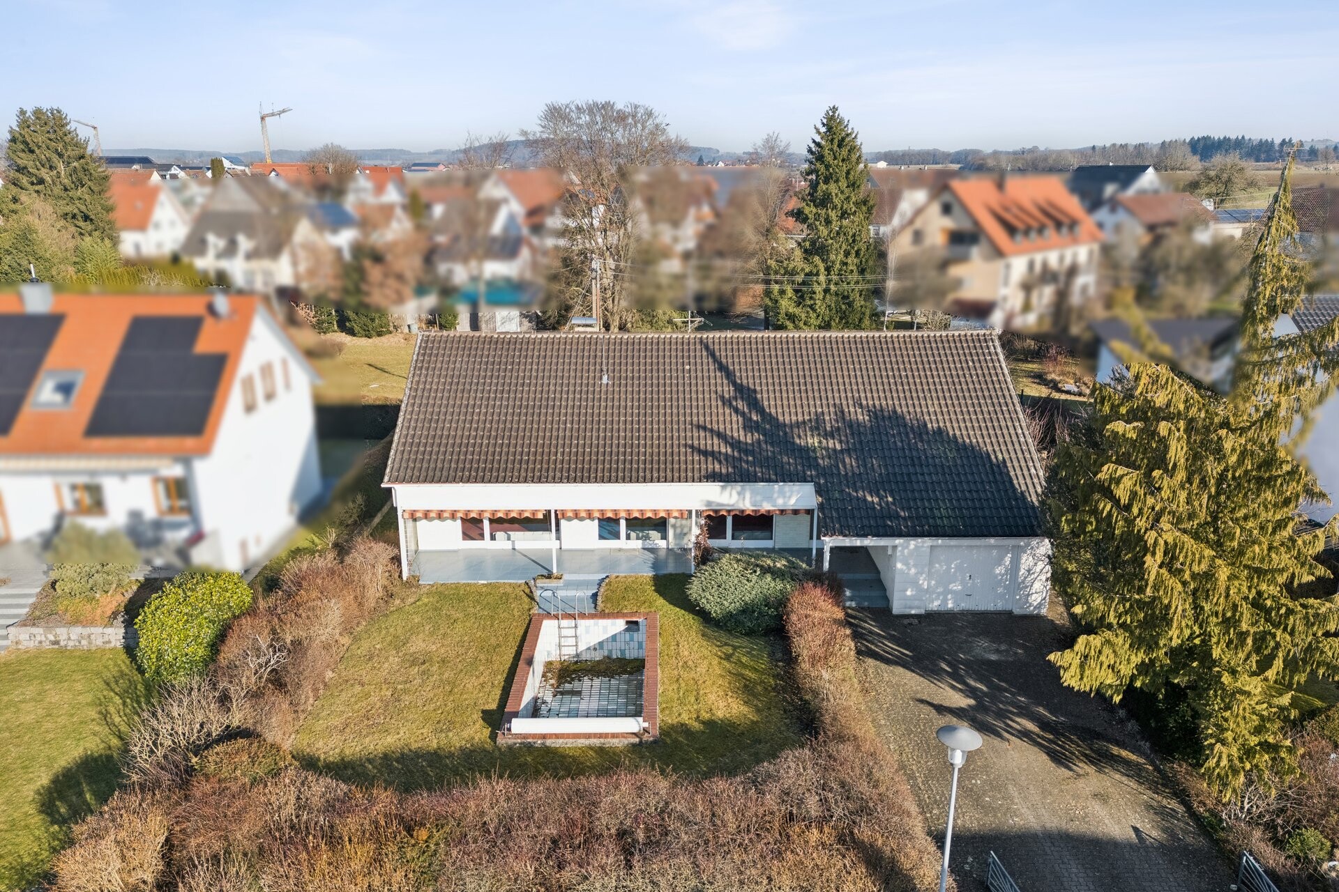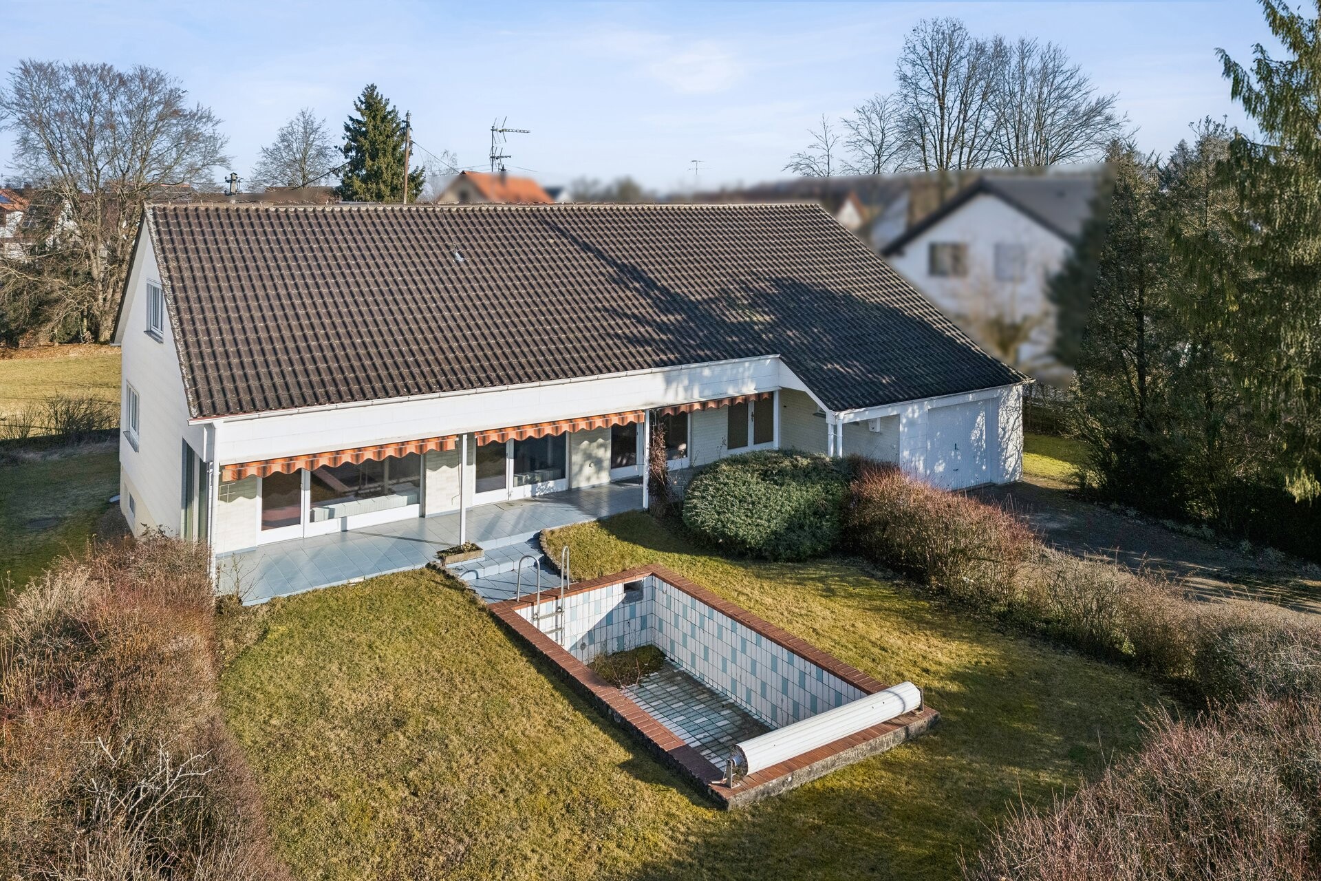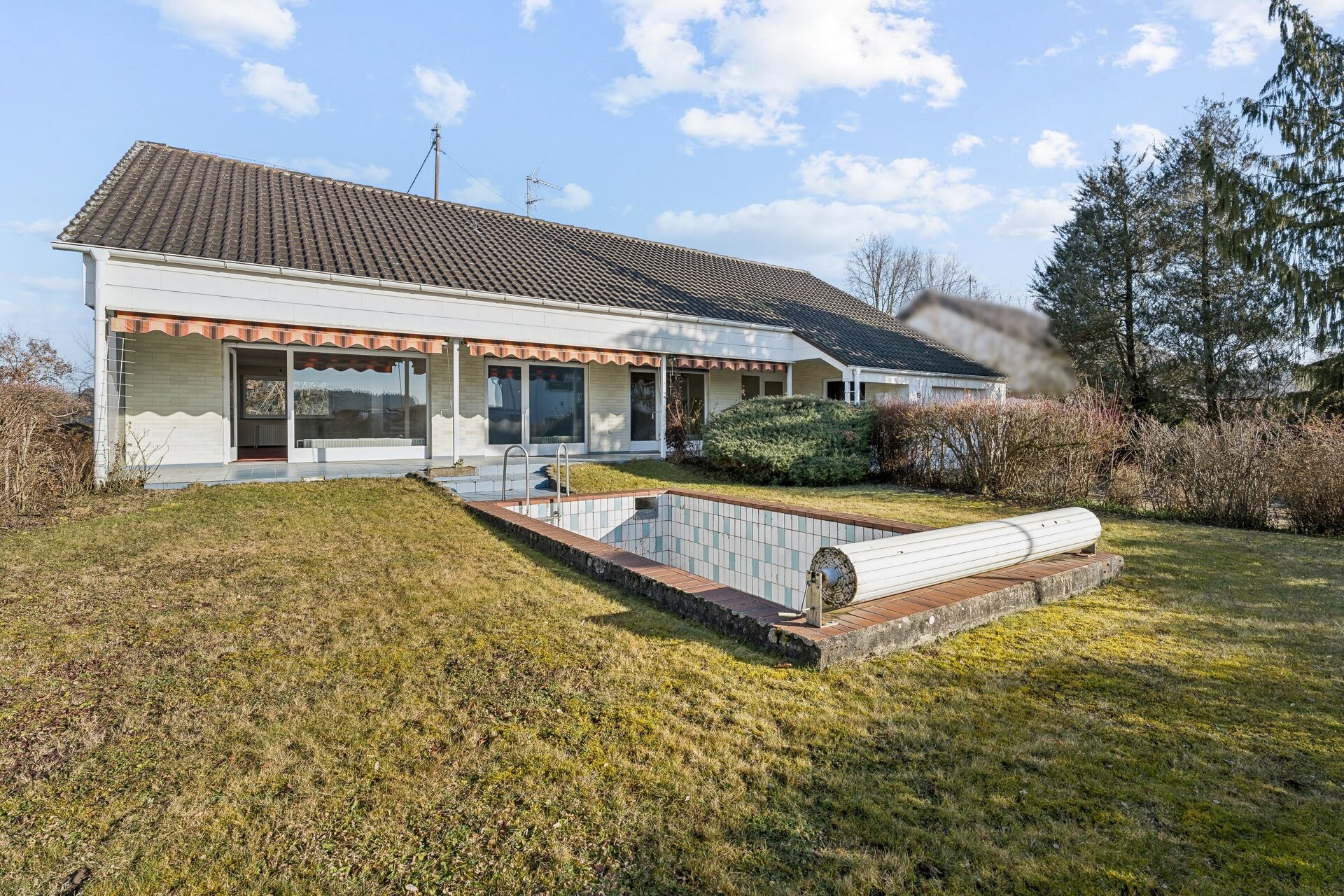 Im Jahr 1970 wurde dieses Einfamilienhaus in teilmassiver Bauweise aus Porenbeton und Holzfachwerk auf einem rund 1.100 großem Grundstück in Rindenmooser Ortsrandlage erstellt. Verteilt auf knapp 145 m² Wohnfläche erwartet Sie im Erdgeschoss ein großzügig geplanter, funktionaler Grundriss mit mehreren Zugängen auf die sonnengewandte Seite des sichtgeschützten Grundstücks. Hier wartet bereits Ihr eigener Privatpool darauf, aus dem Dornröschenschlaf geweckt zu werden.