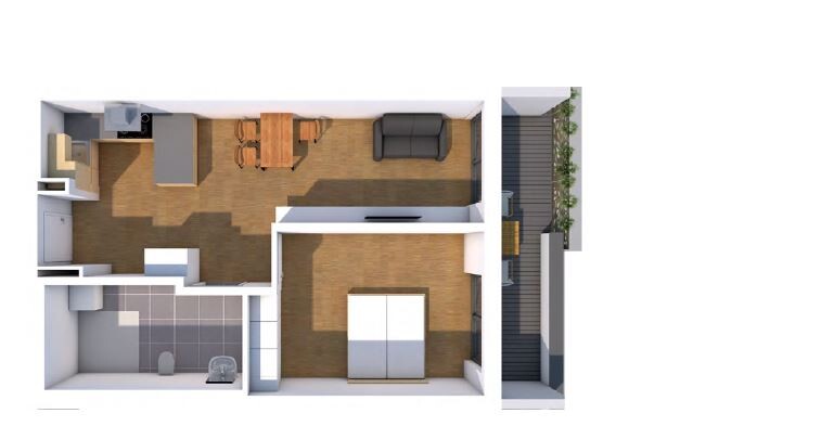 Das seniorengerechte Badezimmer verfügt über eine ebenerdige Dusche sowie ausreichend Bewegungsfläche und ist vollständig barrierefrei zugänglich. Die gesamte Wohnung ist schwellenlos gestaltet, mit breiten Türen ausgestattet und somit auch mit Rollator oder Rollstuhl problemlos nutzbar. Vom Wohnbereich aus gelangt man direkt auf die eigene, sonnige Dachterrasse, die zum Verweilen im Freien einlädt.