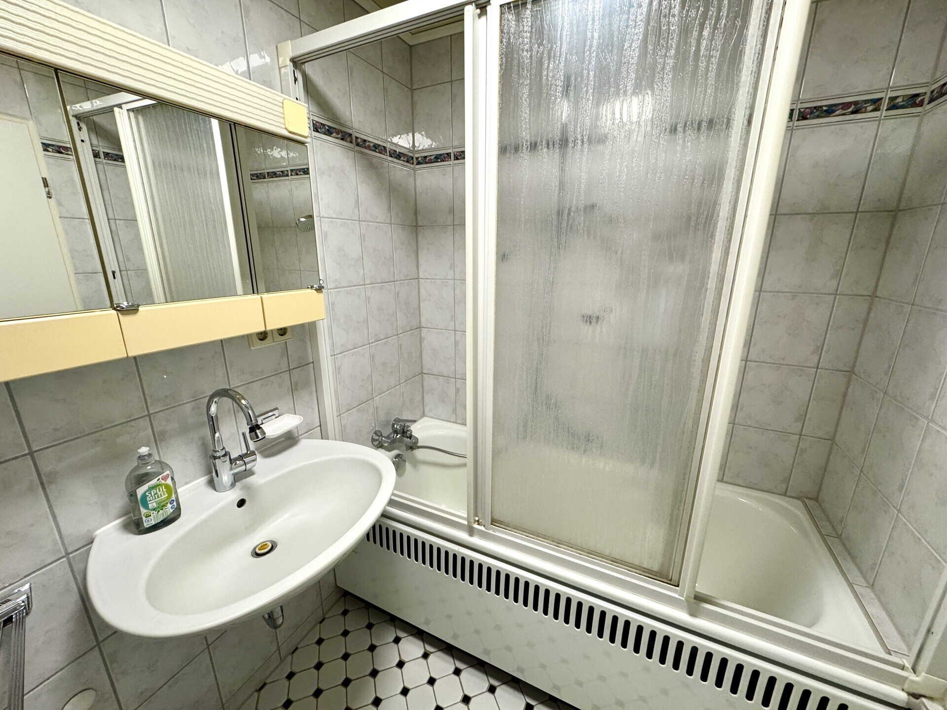 Das Badezimmer mit Waschmaschinenanschluss erfüllt zudem wichtige Anforderungen des täglichen Wohnkomforts und rundet das funktionale Raumangebot der Wohnung ab.