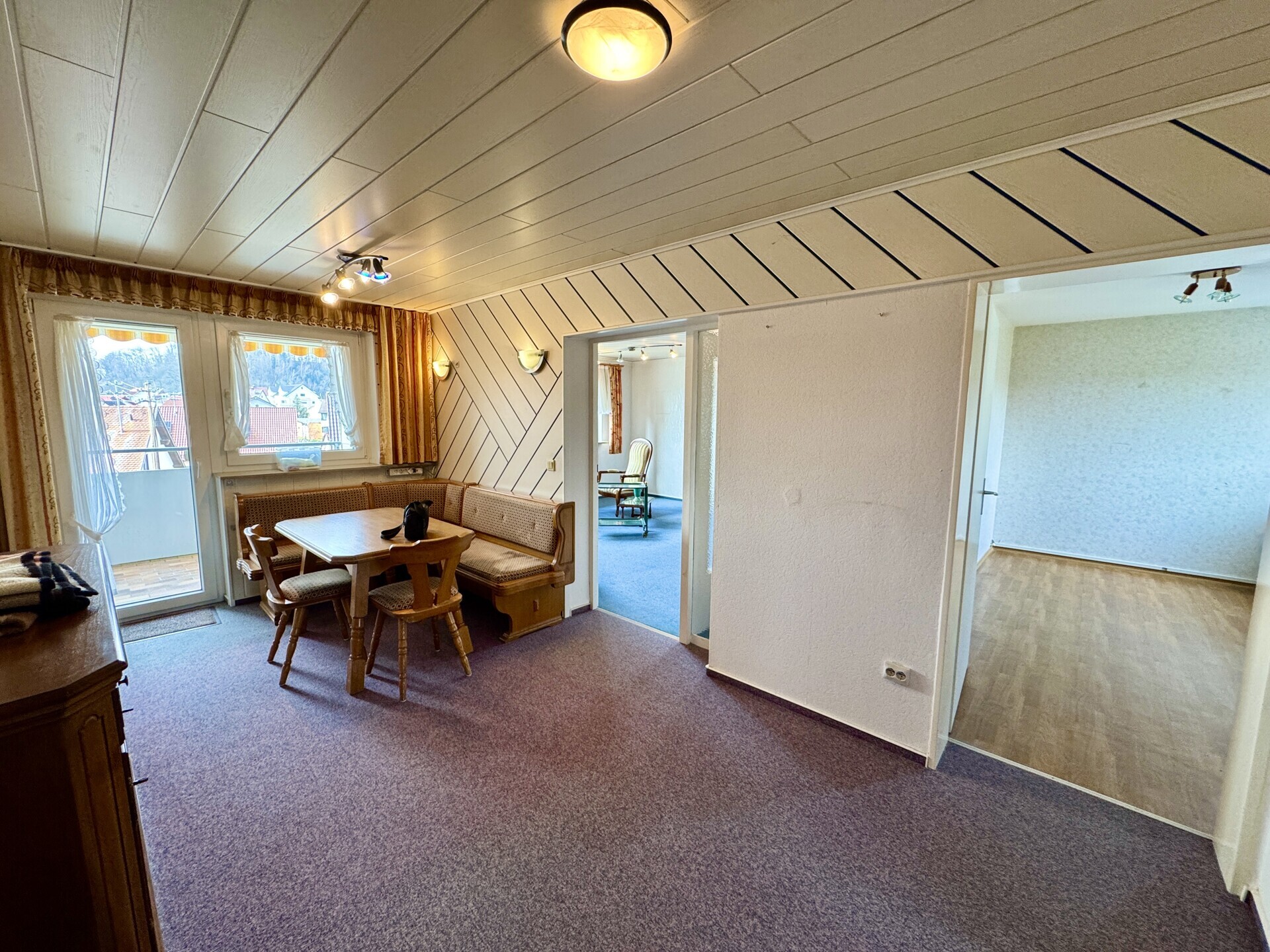 Der attraktiv strukturierte Grundriss schafft eine angenehme Aufteilung zwischen Wohn-, Schlaf- und Arbeitsbereichen. Insgesamt stehen drei flexibel nutzbare Schlafzimmer zur Verfügung. Mittelpunkt der Wohnung ist der Wohn- und Essbereich, der durch seine Helligkeit eine besonders angenehme Wohnatmosphäre schafft. Von hier aus gelangen Sie auf den überdachten Balkon, der mit einer Markise ausgestattet ist und den Wohnraum harmonisch nach außen erweitert – ideal für entspannte Stunden im Freien bei nahezu jeder Witterung.