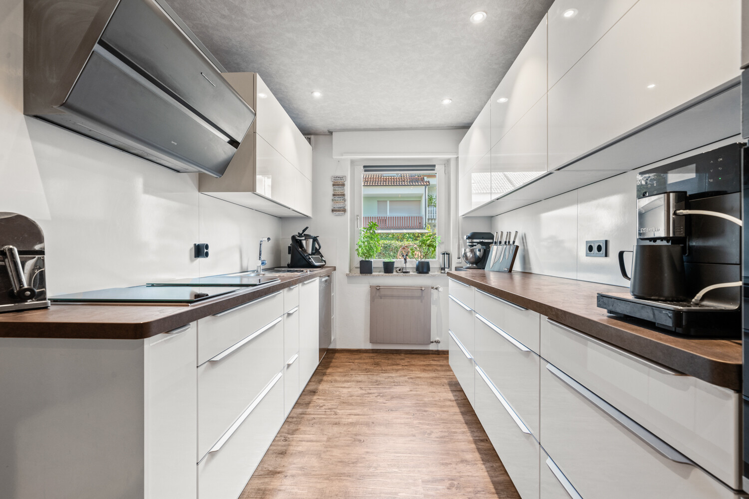 Im Preis enthalten ist eine brandneue, moderne Einbauküche der renommierten Firma Grell. Für die perfekte Terrassenbeschattung sorgt eine in 2025 neu bespannte, praktische Markise. Zudem gehört eine eigene Garage zum Haus, die noch im Originalzustand ist.