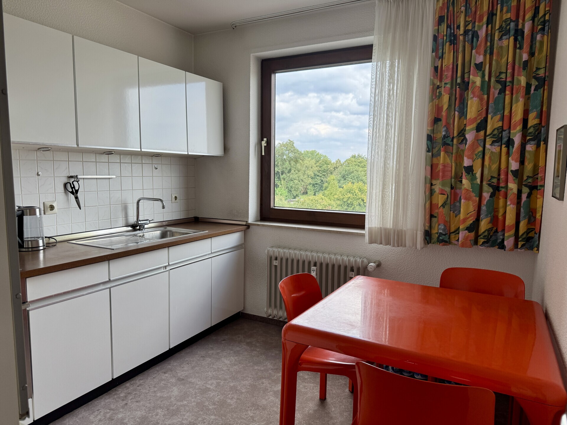 Die Wohnung ist unbewohnt, komplett geräumt (einschließlich Einbauküche) und steht Ihnen sofort zur freien Verfügung.