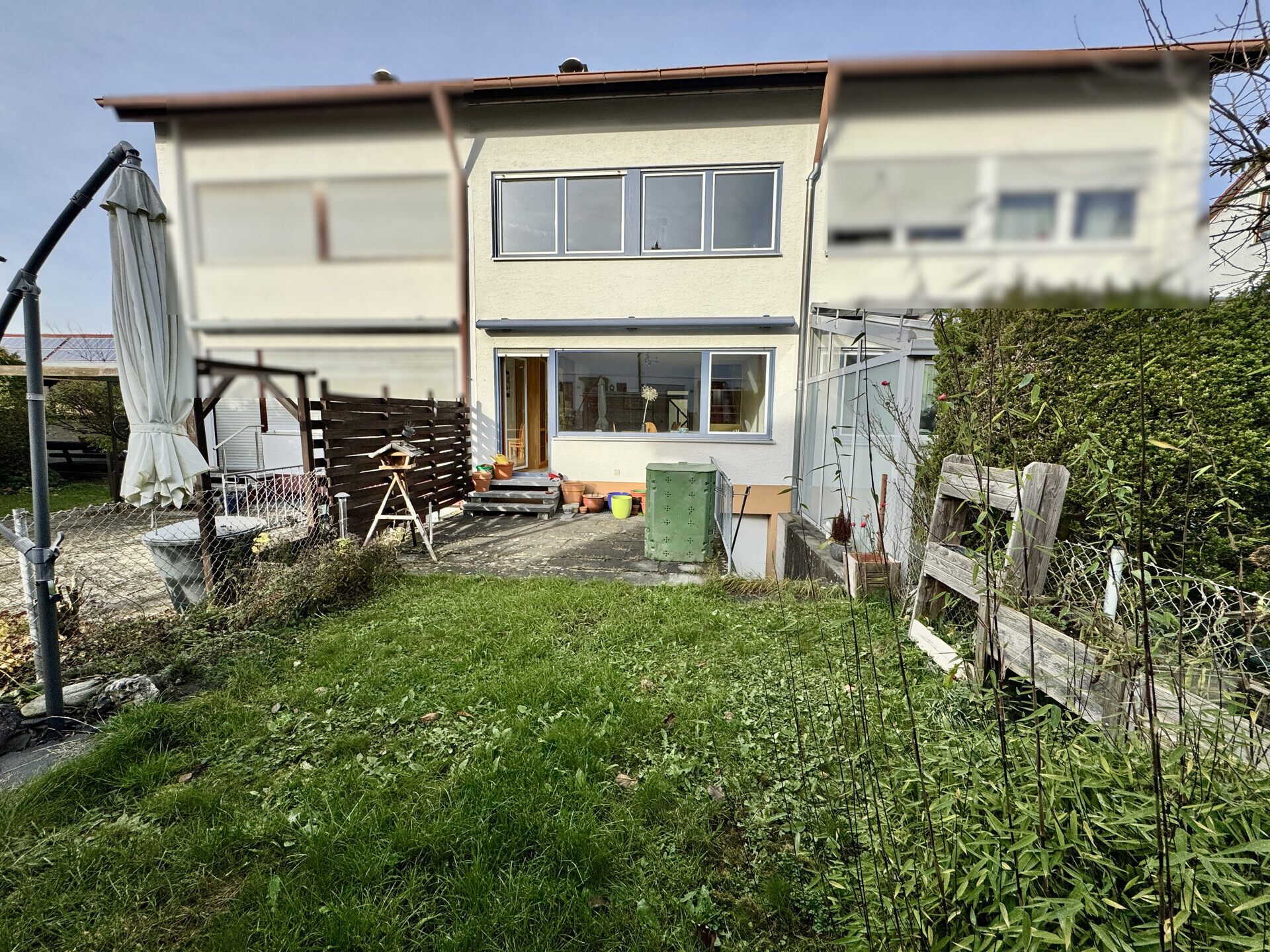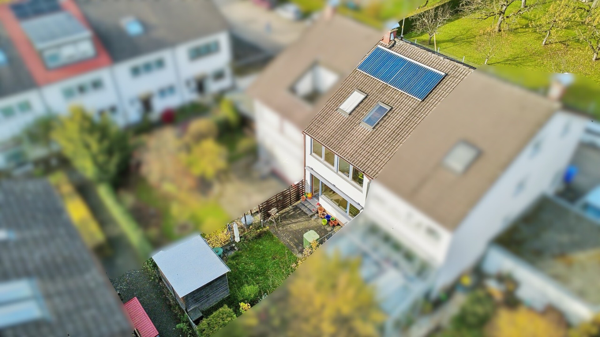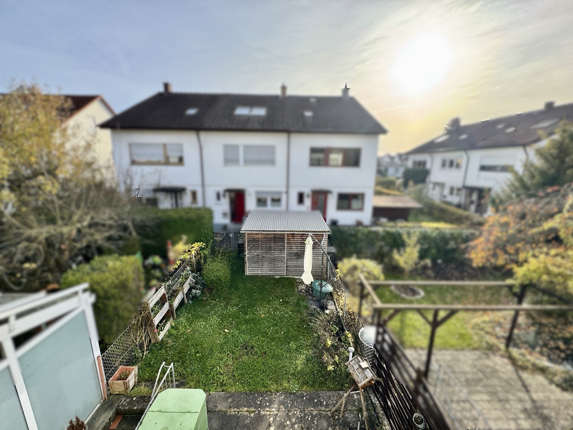 Eine Besonderheit ist der Garten mit einer gemütlichen Terrasse in sonniger Südausrichtung – der ideale Ort für entspannte Stunden im Freien. Ob bei geselligen Grillabenden oder beim Spielen der Kinder, hier wird jeder Moment zum Erlebnis. Ein praktisches Gerätehaus/Fahrradhaus befindet sich ebenfalls im Garten und ist direkt von dem Fußweg aus zugänglich.