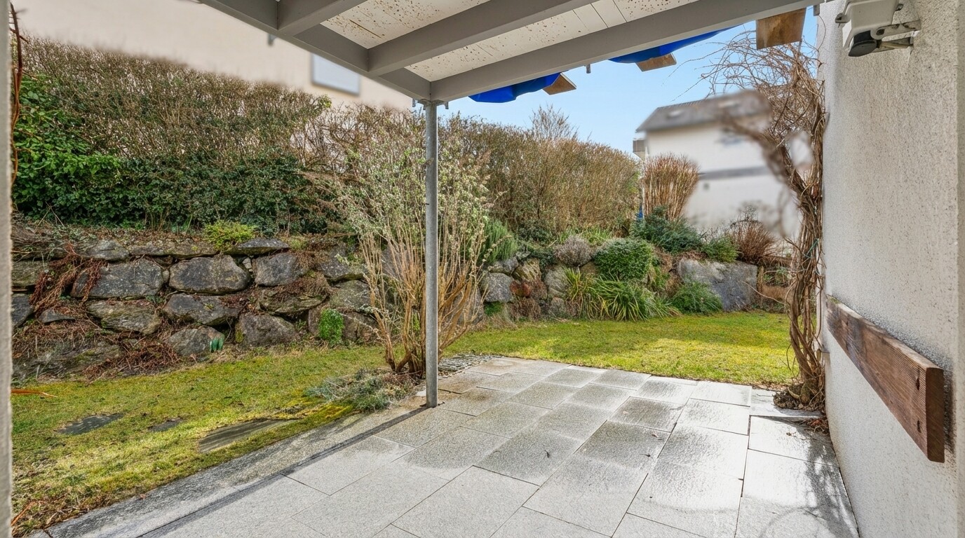 Im Erdgeschoss erwartet Sie ein heller Wohn- und Essbereich mit direktem Zugang zur Terrasse und dem angrenzenden Gartengrundstück.