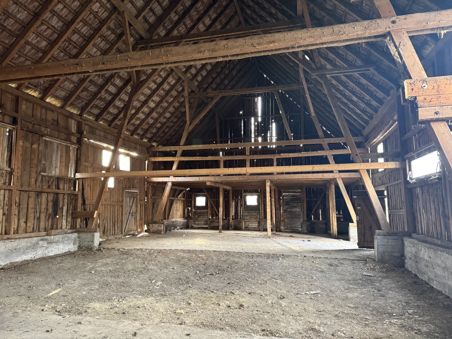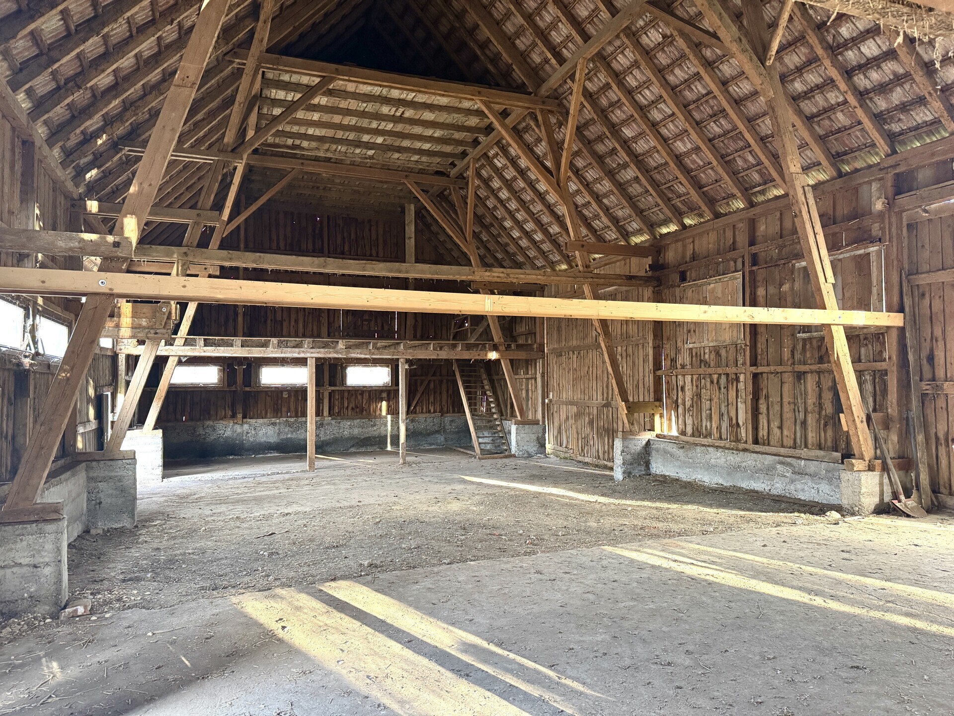 Herzstück des Grundstücks ist die großzügige Holzscheune aus dem Jahr 1946 mit einer Nutzfläche von ca. 250 m². Die einfache Ausstattung bietet maximale Flexibilität in der Nutzung – sei es zur Unterbringung landwirtschaftlicher Geräte (befahrbar), als Lagerfläche, für Hobbys oder private Zwecke.