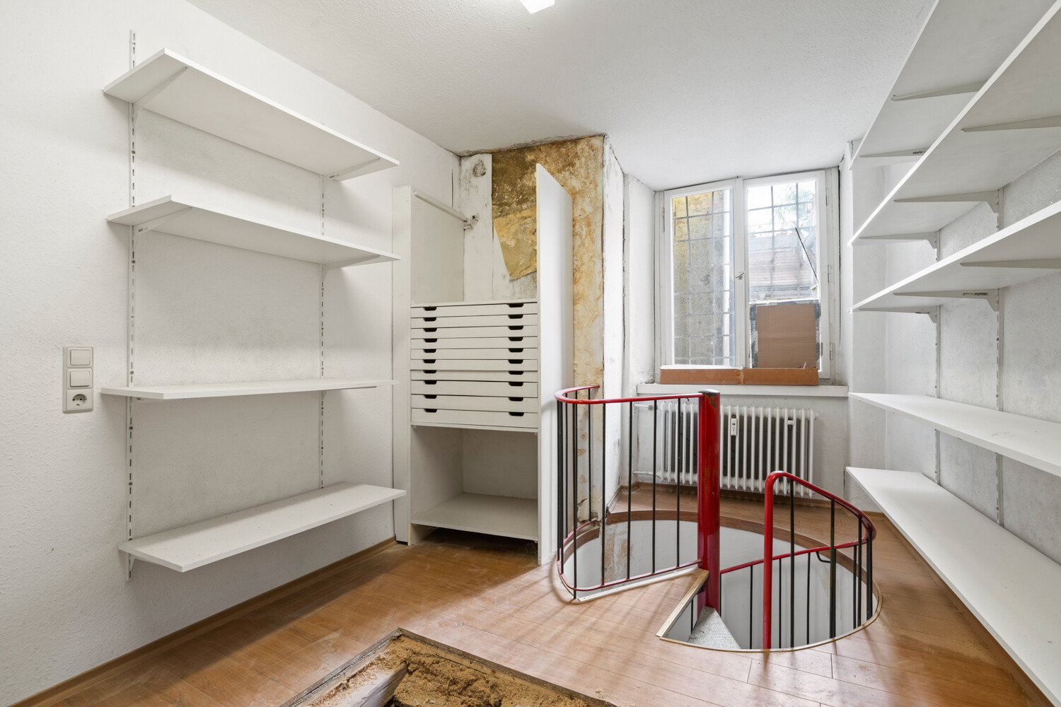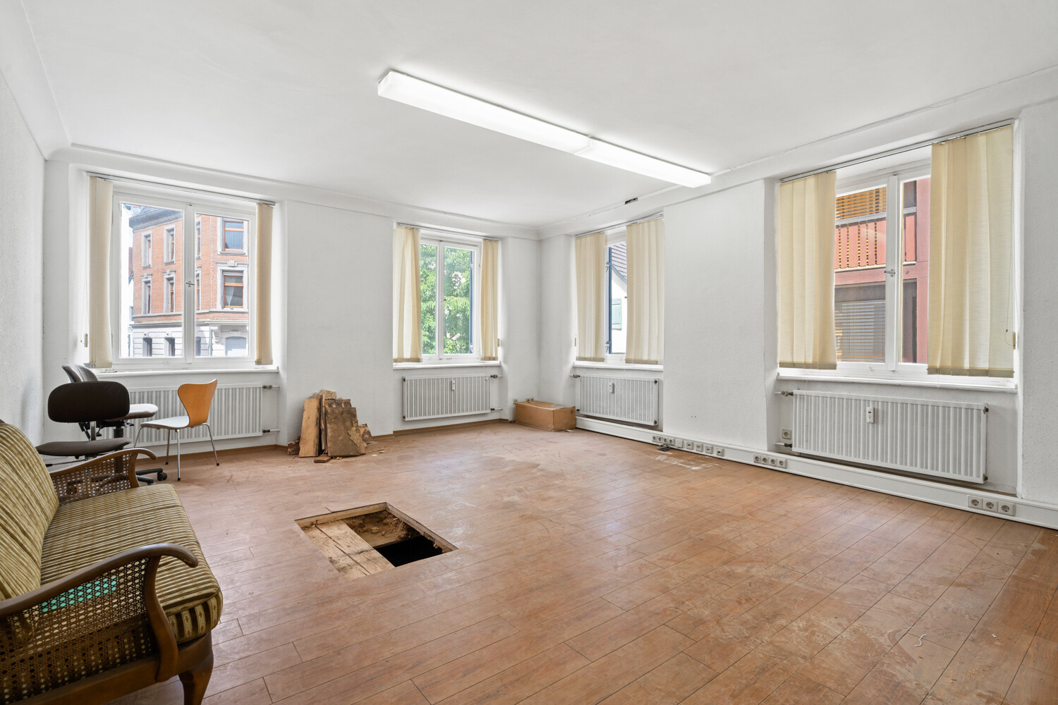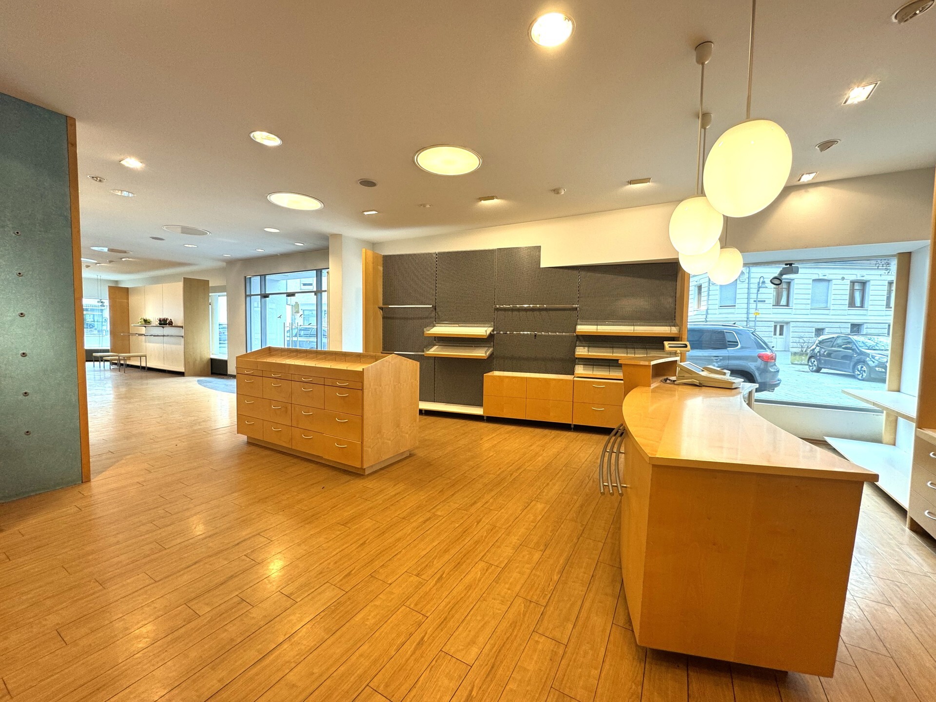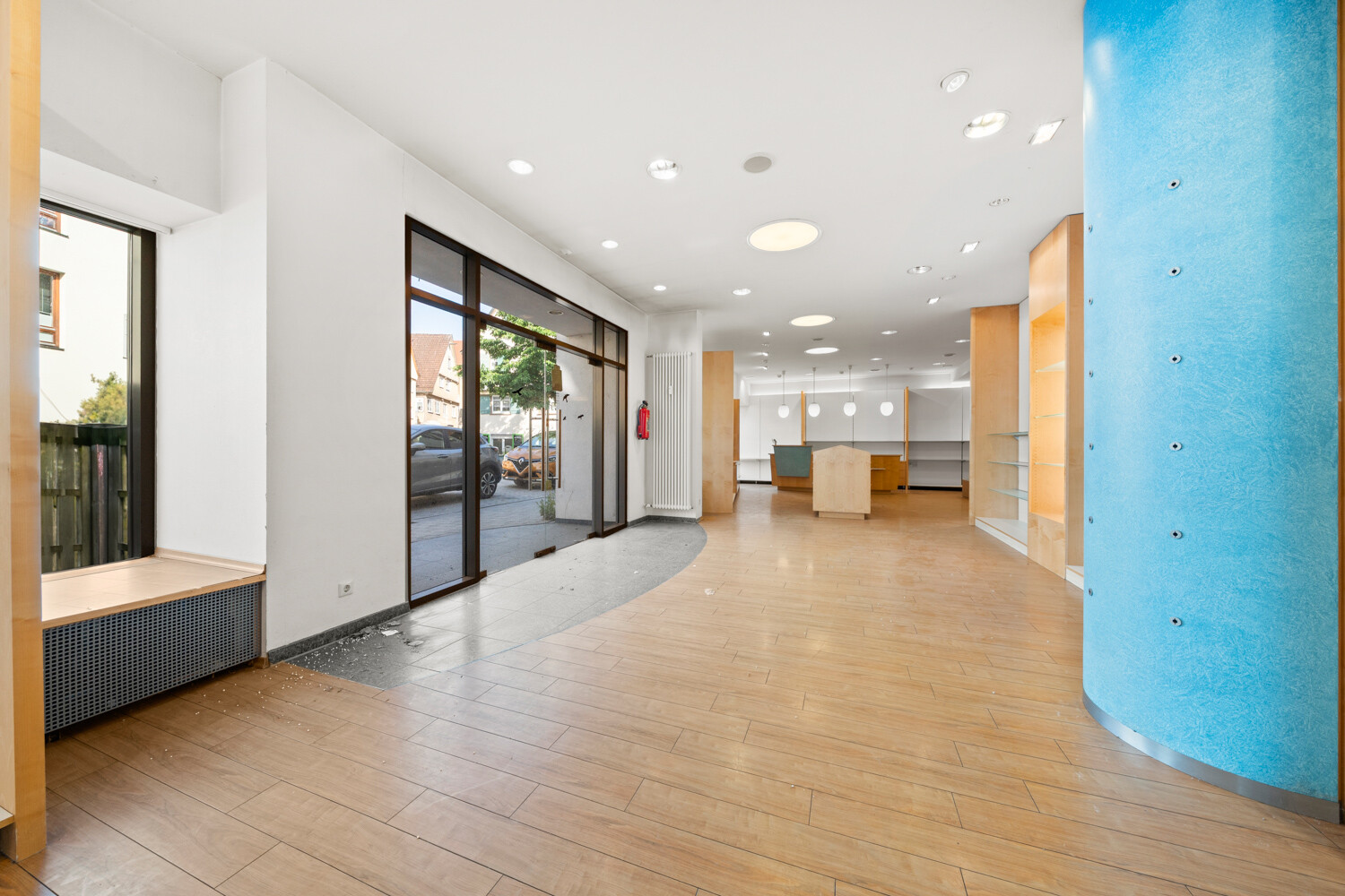Im Erdgeschoss ist eine großzügige Gewerbeeinheit mit einer großen Fensterfront und